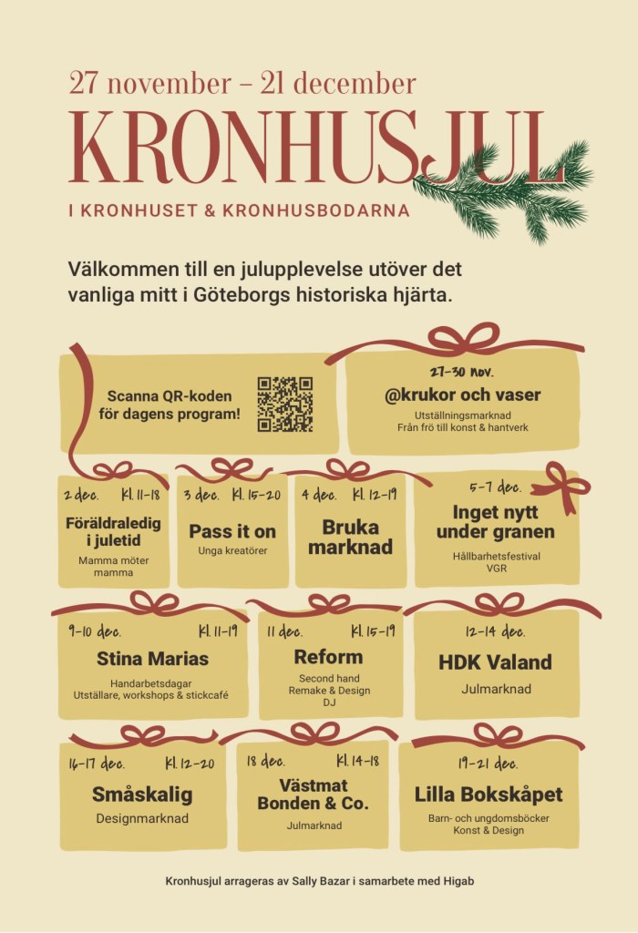 Det kommer vara dagar fulla av olika event och skojigheter runtomkring. Hela kronhuset fylls med glädje, julstämning och det är ett perfekt tillfälle att inköpa sina sista julklappar.