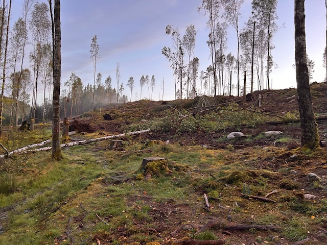 Ja ni ser ovan varför morgondagens skogsbad vid Ryrsjön blir inställt. En magisk skog, med vatten rinnandes intill, härlig mossa för barfotagång och en plats för stillhet och rekreation är numera ett minne blott.