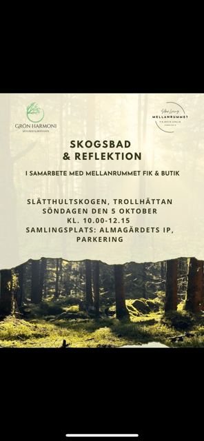 Ha koll efter nya skogsbad på annan plats. Söndagens skogsbad med skrivande i Trollhättan blir av som planerat.