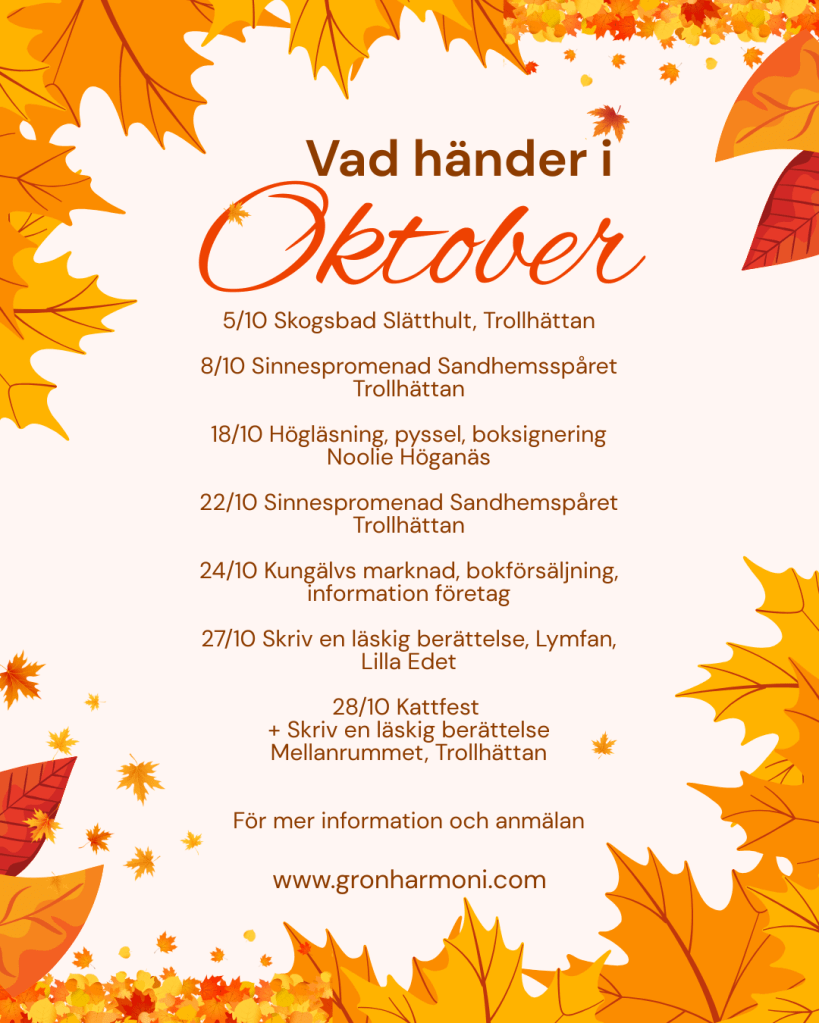 Trollhättan Slätthult den 5 oktober kl. 10-12.15.